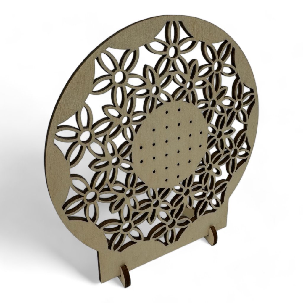 Popis: Tento dřevěný kruhový stojánek na náušnice je praktickým a stylovým doplňkem pro organizaci vaší bižuterie. Díky jemně vyřezávaným větvím a množství závěsných bodů poskytuje dostatek prostoru pro různé typy náušnic. Stojánek má stabilní podstavu a jeho přírodní design se hodí do jakéhokoliv interiéru.